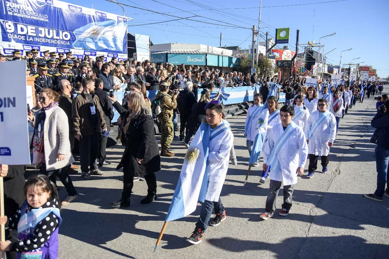 - El desfile contó con la participación de fuerzas de seguridad, instituciones educativas, organizaciones sociales y culturales, y agrupaciones gauchas que desfilarán a caballo, evocando las raíces criollas y el legado independentista.