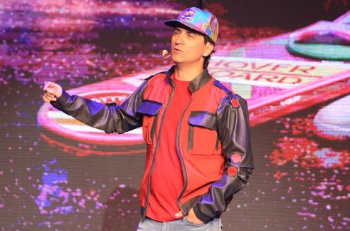 En el show, el humorista aparece lookeado totalmente como Marty McFly, hasta con las zapatillas futurístas que tenía el personaje de Michael J. Fox.